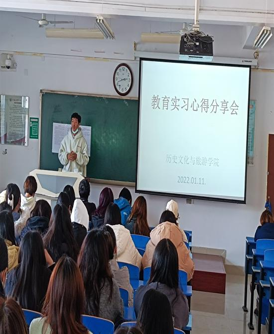 为扎实做好学院实践教学工作,进一步提升师范生教育教学能力,增强教育实习效果。1月11日下午14:30分,历史文化与旅游学院邀请4名2018级师范生在立心楼503教室就自己教育实习的经历、感悟和心得进行了交流分享。交流会由历史文化与旅游学院副院长任晓锋主持,2019级历史学专业全体学生参加了交流分享会。